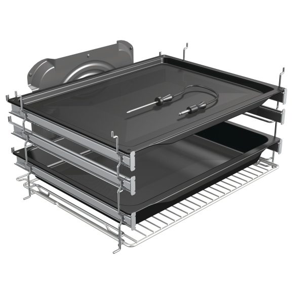 GentleClose lassú ajtózár, teleszkópos sütősín 3 szinten, 1-1 üveg+lapos+mélytepsi,