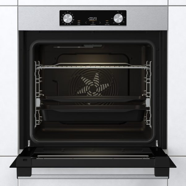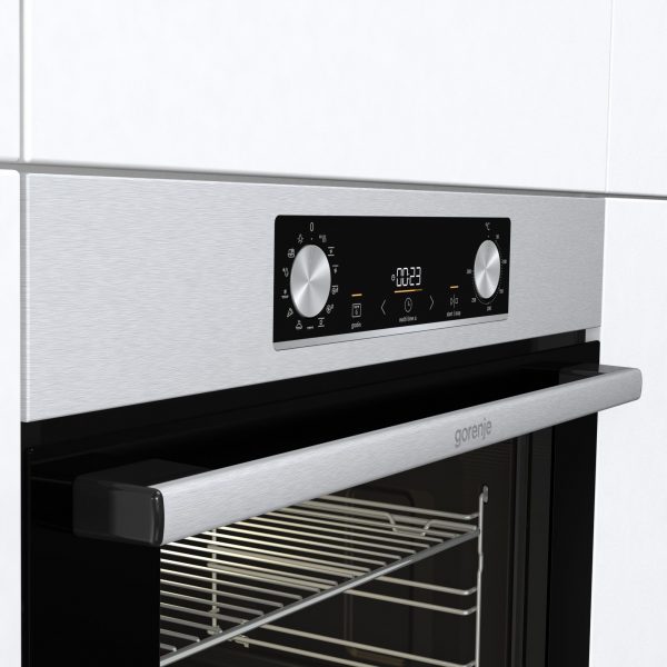 Multifunkciós 12 funkció optibake (hőlégbefúvás, gyors felfűtés, GentleBake, AirFry, FrozenBake, Pizza…stb), ExtraSteam – hozzáaadott gőzfunkció, sütőkamra: 77 liter HomeMadePlus, érintőképernyős kijelző, két süllyesztett tekerőgomb,