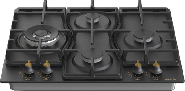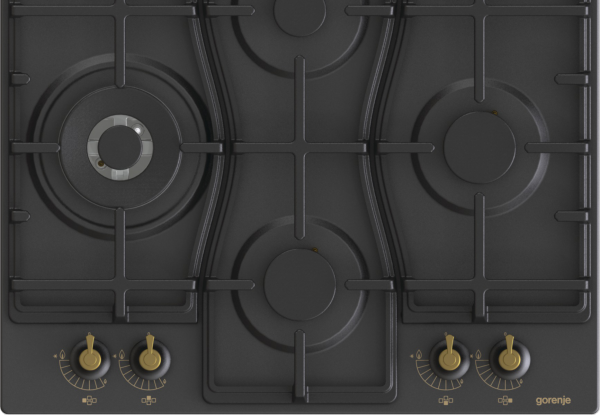 Classico design, 4 gázégő, 1 wok, egykezes szikragyújtás, öntöttvas edénytartó rács és égőfejek,