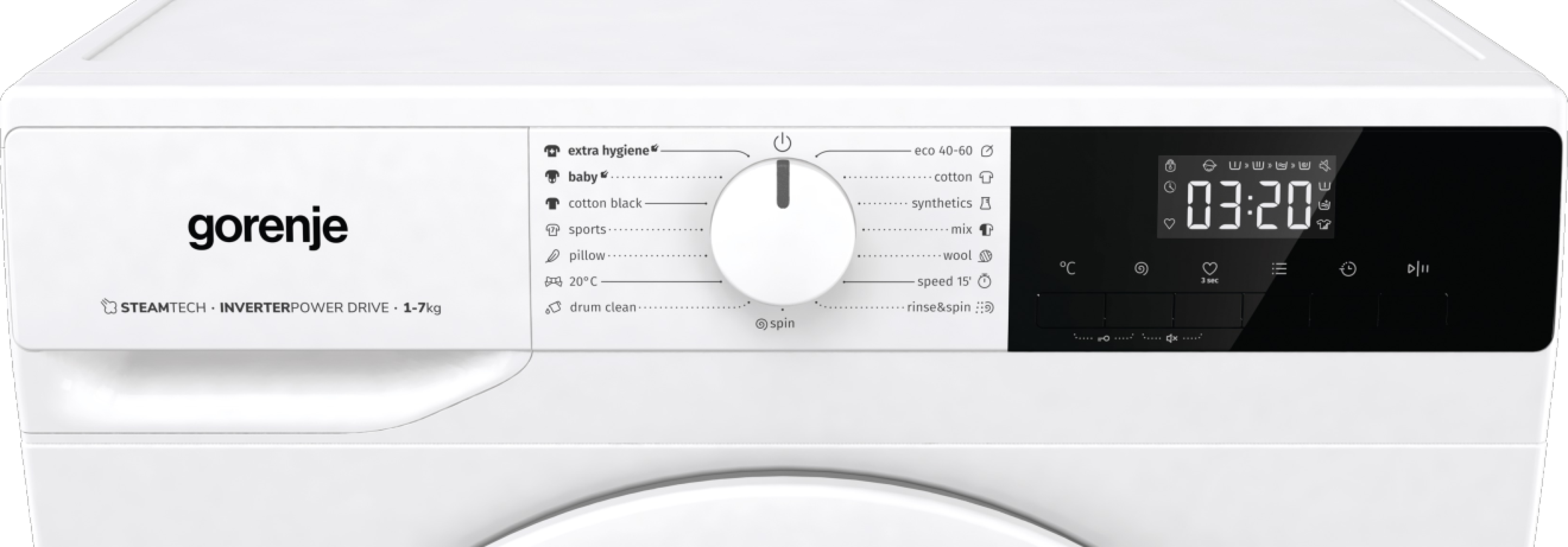 PRIMARY, Töltet: 7 kg / 43l, 1200 ford/perc, C energiaosztály,B,B (59 kWh/100ciklus), INVERTERES motor,