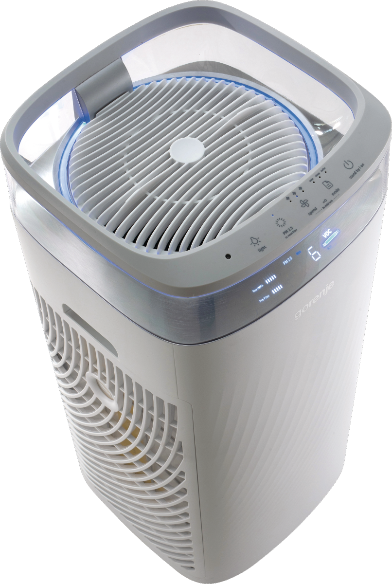 5 sebesség: 3 ventillátor sebesség + turbo mód + alvó mód, Digitális kezelőpanel, A levegő minőségét LED fénygyűrű jelzi, Két eltávolítható 3in1-ben szűrő (előszűrő, H13 HEPA, aktív szénszűrő), Szűrő csere jelző (fényjelzés), LED világítás, Zajszint (25 dB), CADR (Tiszta levegő szállítási sebesség): 500 m3/h, PM2.5 & VOC szenzor,