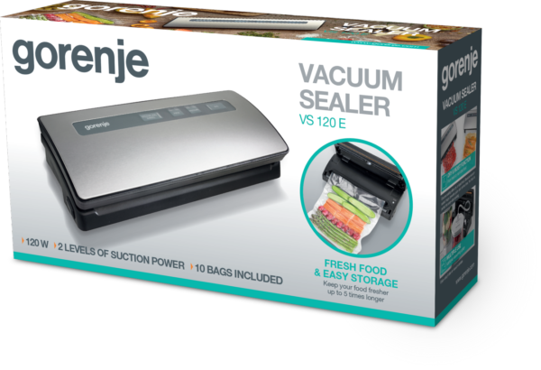 VÁKUUMCSOMAGOLÓ Teljesítmény: 120 W, elektronikus vezérlés, működés visszajelző fények, műanyag és fém palást, vákumoző teljesítmény 12l/perc, kábeltartó, méretek: 36,5×7,5x14cm