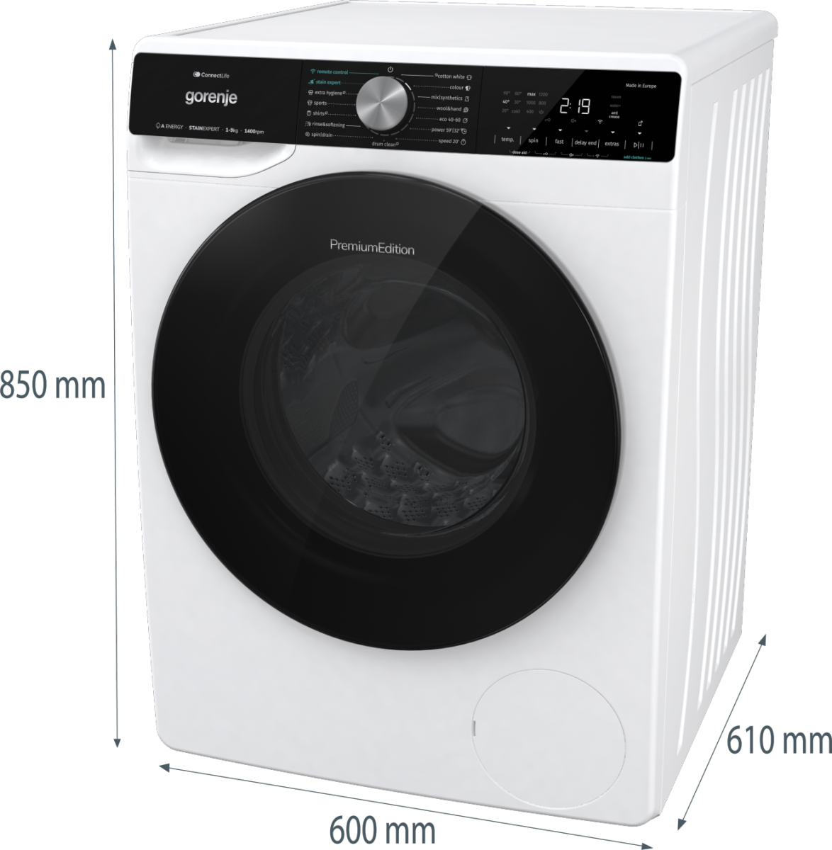 SUPERIOR Töltet: 9 kg / 64l, 1400 ford/perc, „A-10%” energiaosztály, Energiafelhasználás: (44 kWh/100ciklus)